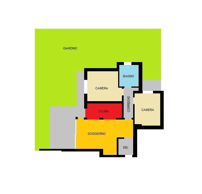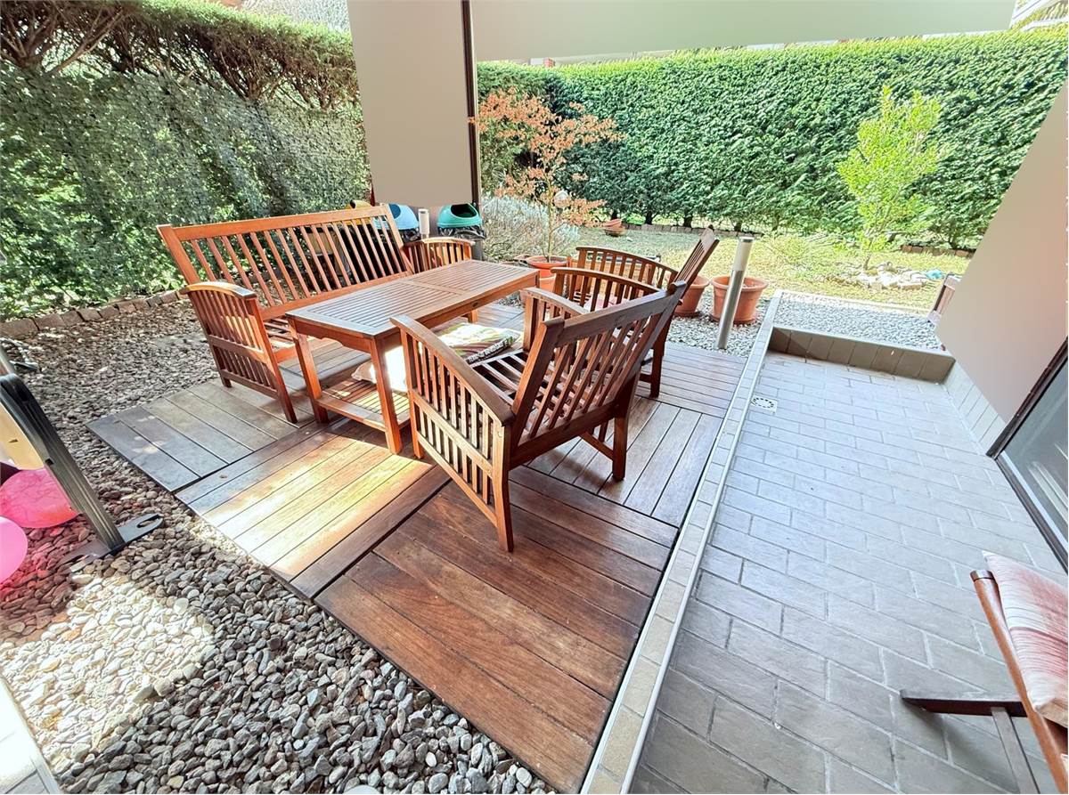 In contesto residenziale tranquillo, all'interno di un edificio in ottimo stato conservativo, proponiamo in vendita un trilocale al piano terra, dotato di un ampio giardino privato. L'appartamento si compone di: un soggiorno luminoso con cucina a vista, una camera matrimoniale, una camera singola e un bagno finestrato. L'offerta si completa di una cantina e un box auto privato. C.E.: C